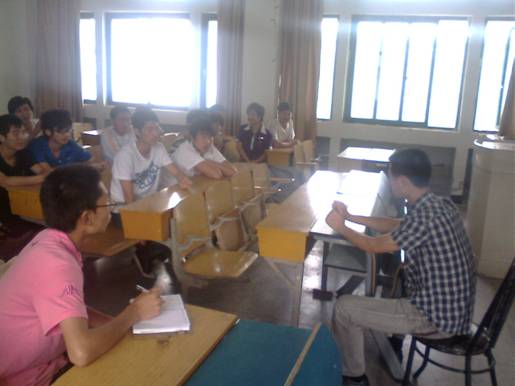 为了更好地让广大同学们了解现阶段从普通高职院校毕业生中入伍及招收士官有关政策规定。2010年6月1日下午1点30分,建筑工程系邀请我院06级汽修专业士官王辉学长来我系与想要报考士官的08级学生就士官政策及待遇问题做了一次深入的交流。交流会中我系08级学生就士官招收对象、招收条件、招收专业、招收程序和有关政策规定做了深入的交流,王辉学长解答了08级学生的一些问题,经过长达一个多小时的交流,08级学生对士官政策有了进一步的了解。