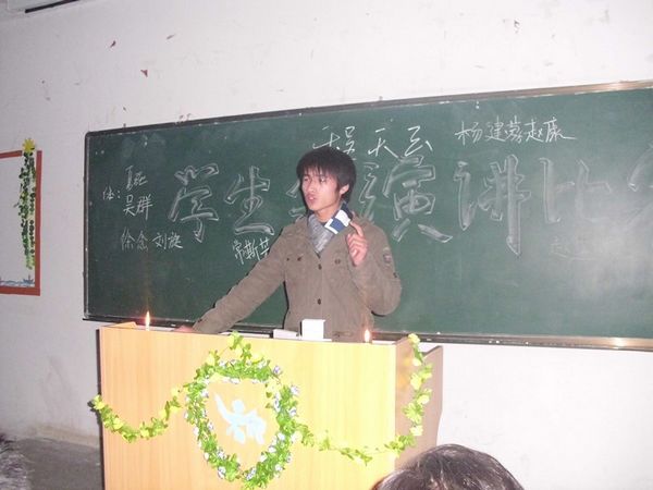 为了促进新老学生会成员的交融互动,同时也为了帮助下一届学生会成员更好的投入学生会工作 ,我系于2010年12月15日下午5时30分至晚上9时在 1#教学楼411教室举行了一场别开生面的“学生会演讲比赛”。由系团总支书记杨庆丰同志主持,09级学生会所有成员上台演讲,10级新成员作为评委打分点评。