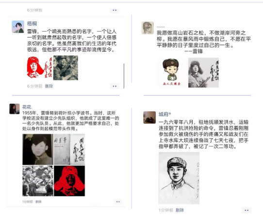 本次活动分为三个部分,活动一:分享一次雷锋印记。各团支部青年学生通过在微信朋友圈转发学雷锋倡议书、发布志愿风采、学习心得等方式,一同追寻雷锋记忆,讲述雷锋故事,营造了浓厚的班团学雷锋文化的氛围。活动二:“ 爱洒三月天”爱心助教志愿服务活动。志愿者同学们来到了这个只有17个学生的岛中校(新洲实验学校),迎接大家的是一张张淳朴稚嫩的小脸,志愿者同学们带着小朋友们通过开展“唱雷锋之歌、讲雷锋故事、做雷锋人”系列学习活动,引导孩子们要传承红色基因,用活红色资源,了解党史知识,推动了红色文化和社会主义核心价值观深入校园、深入人心。在张欢欢老师带来的科普小课堂中,从大学校园到小学教室,引导小学生们了解建筑文化,拓展同学们的科学视野,培养小学生勤动手、善动脑、爱学习、乐创造的科学素养和实践能力。激发小学生爱科学、学科学、用科学的积极热情,在活动中注重孩子们的情感体验与价值观的形成,将科学普及的种子深深埋在孩子们的心里。活动三:弘扬当代雷锋精神,助力疫情防控持续战。还记得去年的这个时候,为助力打赢疫情防控阻击战,建筑工程学院2019级社招(1)班有这样一支突击队,主动请缨,迎难而上,加入了防疫“第一线”。 高海争、桂帅率、黄俊、吴智宝、殷洁等退役大学生在家乡疫情防控点严格按照疫情防控标准对重要进出口进行测量体温等隐患排查,24小时随时待命,帮助了防疫工作有序进行。在这场没有硝烟的战场上,他们退役不褪色、勇敢逆行,在危急时刻彰显了军人本色,用责任与担当诠释了中国青年的奉献力量!