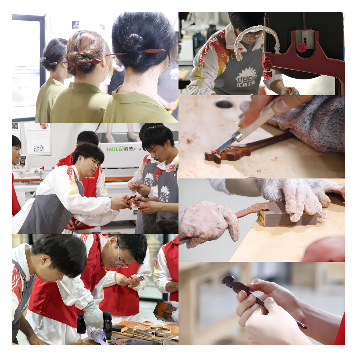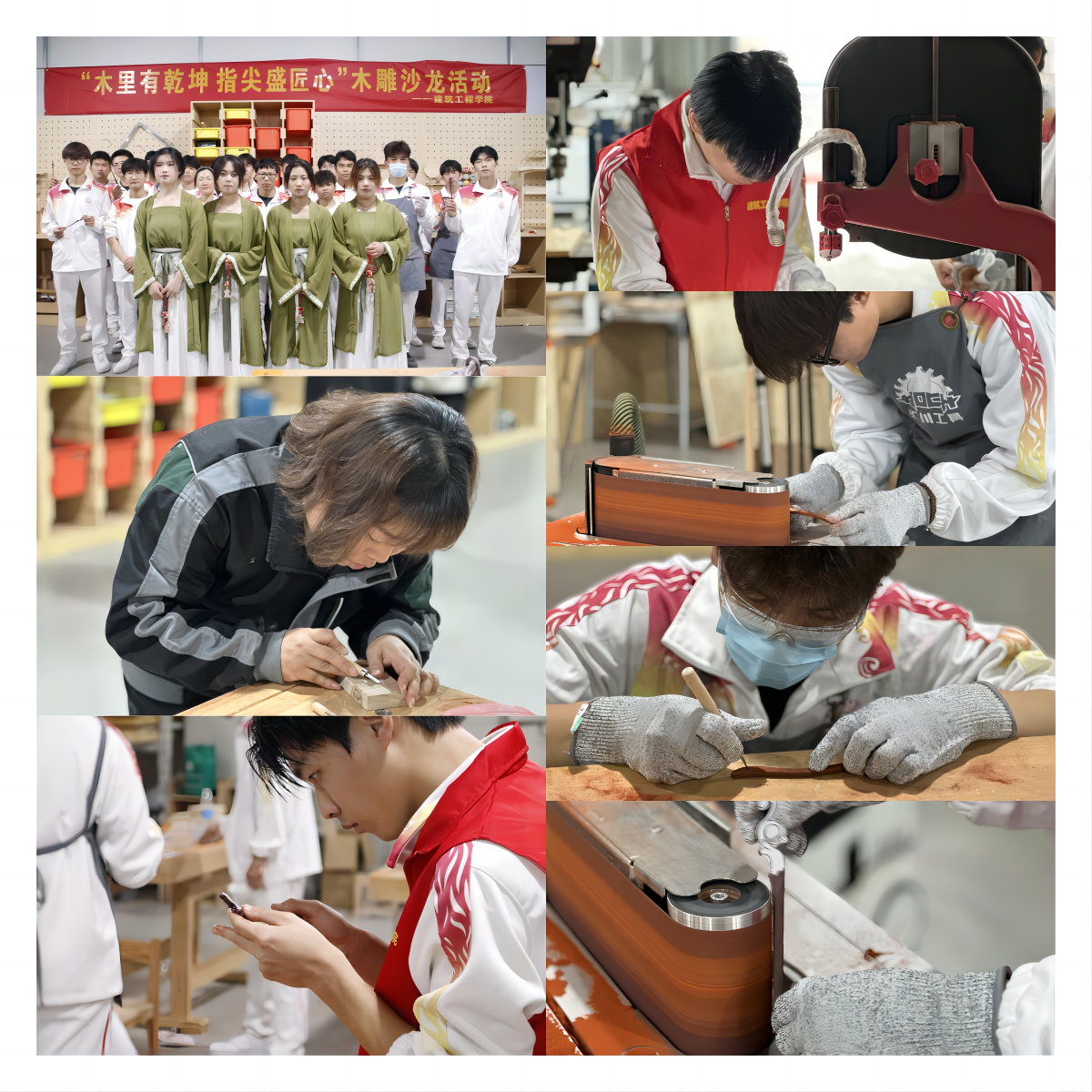 为了让学生感受木雕文化精髓,4月14日下午,在建筑工程学院木工坊中,举办了木雕沙龙活动。在张欢欢老师的带领下,同学们绘制木簪形状、切割紫檀木、线锯初步木簪形状、美工刀雕刻木簪、细砂纸打磨、抛光,最终在这一刀一刻中制作出了独属自己的木簪。