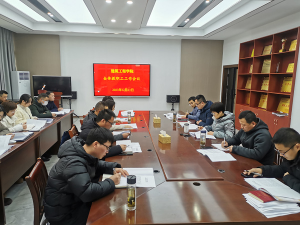 为及时传达并全面贯彻落实12月11日上午 “校党委学习践行‘四下基层’优良传统,赴建工学院召开现场办公会”会议精神,12月13日下午,建筑工程学院召开全体教职工会议,会议由党总支书记、院长、黄大年式教师团队创建负责人陈月萍主持,全体教职工参加。