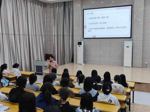 学院特别邀请马克思主义学院心理健康教研室王蕾老师,为2024级女同学作题为“当爱情来敲门”讲座。引导和帮助同学们树立正确的恋爱观念、正确认识青春期生理和心理的变化,增强自我保护意识。同学们全程认真聆听,现场气氛热烈活跃,现场互动环节中,针对同学们的疑惑进行了详细、耐心的解答。