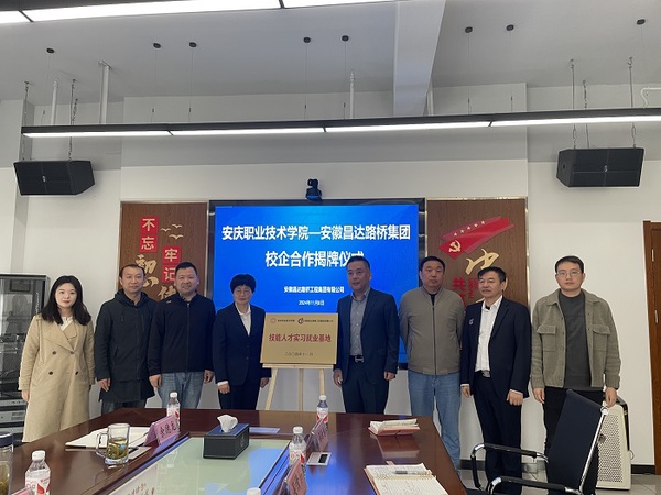 为进一步深化校企合作、拓宽学生就业渠道,更进一步推进校企协同育人,11月8日上午,建筑工程学院与安徽昌达路桥工程集团有限公司隆重举行校企合作揭牌仪式。建筑工程学院党总支书记、院长陈月萍教授、安徽昌达路桥工程集团有限公司总经理刘峰出席揭牌仪式,企业职能部门负责同志、学院分管学生工作负责同志及相关教师代表参加揭牌仪式。