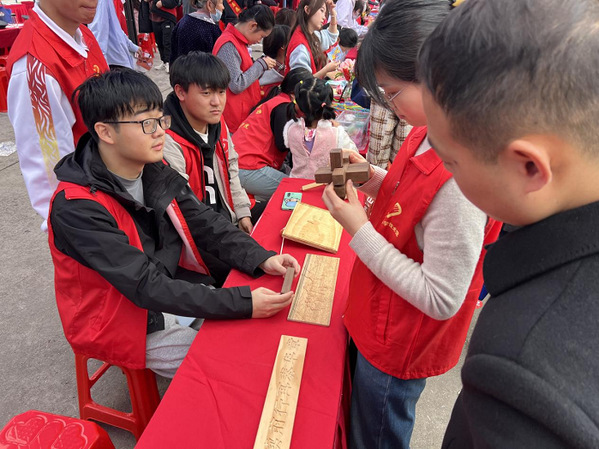 3月1日,建筑工程学院响应团市委号召,参加2025年安庆市学雷锋青年志愿服务嘉年华活动。本次活动中,建筑工程学院青年学子承担了榫卯传统建筑文化展示任务,结合专业知识为现场市民讲解展示的作品。活动现场,建工学子生动详细地介绍了榫卯结构这一中国传统建筑的精髓,向广大市民展示了鲁班锁构造和玩法,用通俗易懂的语言阐释班墨文化,发出保护和传承非物质文化遗产的号召。随后,许多市民通过亲手拼装鲁班锁、鲁班桥,感受榫卯结构的奥妙,现场气氛热烈,欢声笑语不断。