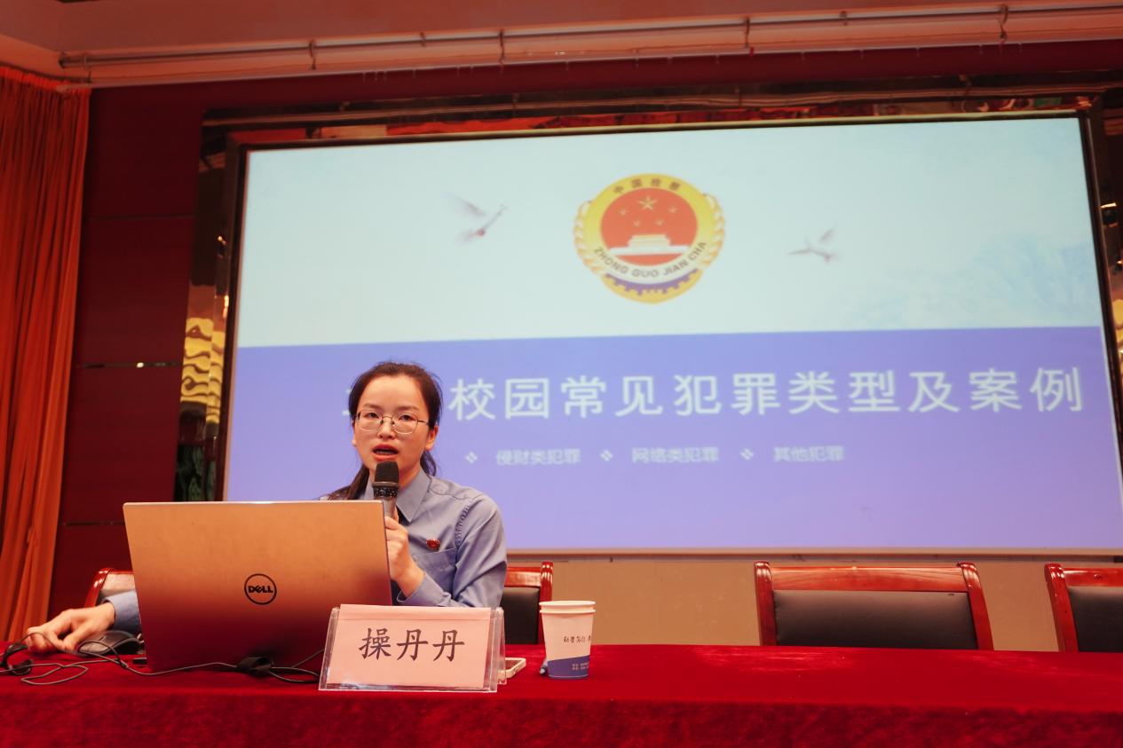 为进一步加强校园法治建设,增强学院学生法治意识,明确法律底线,提升安全防范和反诈能力,营造平安和谐校园环境。202 5年5月28日下午,我院在图文一楼报告厅开展“检护青春 法育未来”普法知识讲座。本次讲座特邀安庆市迎江区人民检察院操丹丹检察官为主讲嘉宾。院党总支副书记叶彤主持会议,学生管理相关同志、辅导员及500余名学生共同聆听讲座。