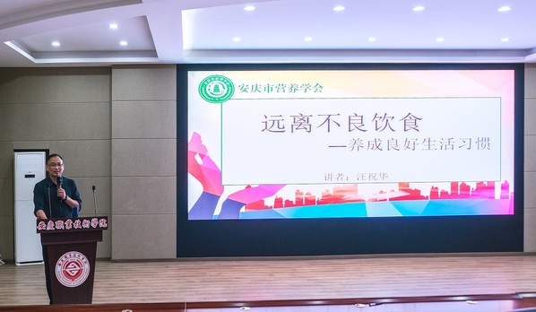 5月23日晚,在第八届“全民营养周”到来之际,校科协特邀迎江区科学技术协会副主席汪祝华到校作主题讲座。九十余名学生现场参加讲座,其他学生在线上收看讲座直播。