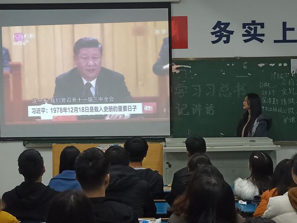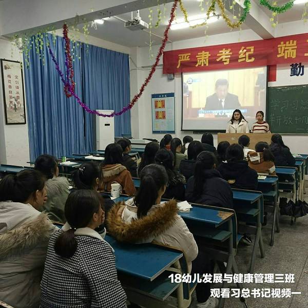 2018年12月25日晚,社会事业系各班级在教室集中学习观看了庆祝改革开放40周年大会视频。