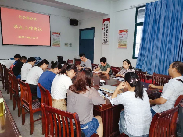 8月27日下午,社会事业系在系会议室召开新学期学生工作会议,会议由该系学生管理科科长主持,全体专兼职辅导员参加了此次会议,系主任高润霞到会。