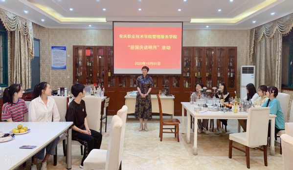 10月1日晚7;30,该系在3号教学楼西餐实训室开展了“贺中秋话明月”活动。系主任高润霞、学生管理科科长、团总支书记和全体在校学生一起,共唱《我和我的祖国》,同诵经典佳句。同学们个个精神饱满,激情澎湃歌唱祖国,声情并茂诵经典,表达了对伟大祖国的无限热爱之情,展现了该系学子积极向上、奋发有为的精神面貌。