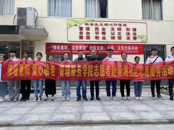 为弘扬中华民族敬老、爱老、助老的传统美德,营造重阳节的节日氛围,10月13日,管理服务学院志愿者服务团队走进菱湖社区开展“情暖重阳 爱心敬老”活动,陪伴社区老人共度重阳佳节。
