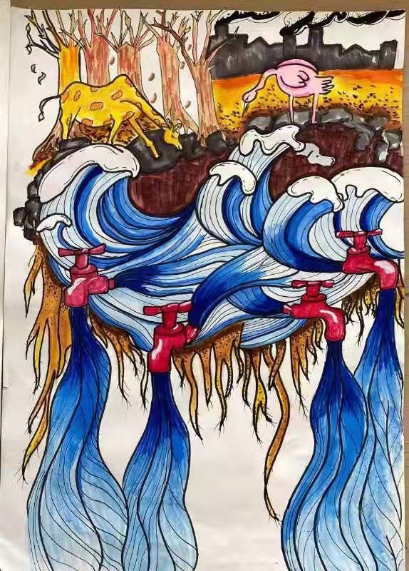 此次作品展,学生从“大地之母”、“世界末日”、“幸福未来”等角度,用诙谐幽默的画风展现了节水、护水、爱水、惜水的主题内容,表达了对保护水环境、共建碧水蓝天的憧憬;让学生在色彩和视觉的冲击中,意识到节约用水,人人有责,从而更深刻地理解保护水资源地重要性。(文/汪婷 审核/丁凡)