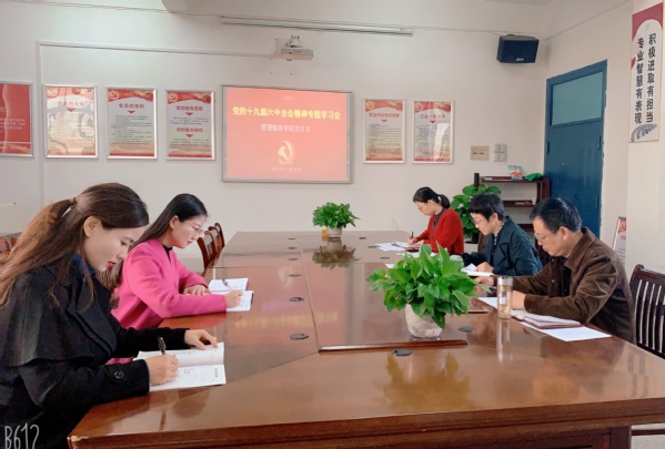 11月15日上午,管理服务学院党总支在院会议室召开党的十九届六中全会精神专题学习会,会议由党总支书记高润霞主持,党总支班子成员参加学习。