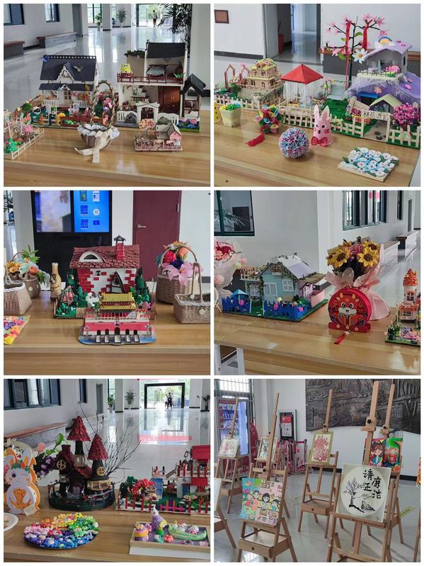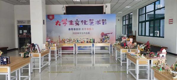 此次大学生文化艺术节包括两大部分,第一部分是各专业学生别出心裁的手工作品展,校领导童宏葵、毕明生、李克让、谭维奇、程飞、陈继平、吴何珍、李五一出席并指导展览活动。展出的手工作品包括剪纸、褶皱纸花束作品、优秀阅读笔记、不同主题的绘画作品以及酒店管理和旅游管理专业的精美的插花作品、精湛的茶艺表演和调酒展示。酒店管理专业学生舒家乐为观展师生介绍了“龙舌兰日出”、“玛格丽特”等鸡尾酒的调制过程和创作者背后的故事传说。童书记亲切地询问学生专业学习情况,并鼓励学生学好专业技能,做新时代的能工巧匠。