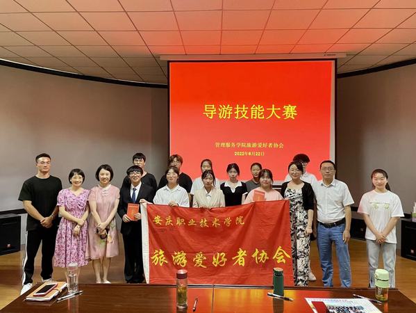 2022年6月22日下午,由旅游爱好者协会举办的导游项目技能大赛在三号教学楼216教室成功举办。旅游管理专业老师李荣、何刘杰、吴紫英和华林蔓应邀担任评委。