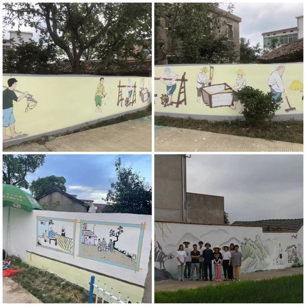 6月30日到7月7日,团队联合动漫专业的师生们对接新联村美丽乡村工程,开展墙绘工作。在老师们的指导下,同学们围绕乡村振兴、和谐家风、健康生活、讲文明树新风、防溺水等主题,设计了独具风格的墙绘内容,以富有创意的表现形式展示乡村之美、生态之美、风土之美和人文之美,助力乡村风貌整治和乡村振兴。