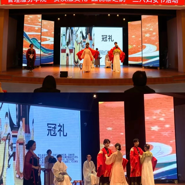 “阳春三月莺恰啼,芳菲绘彩蝶蹁跹”,伴随着和煦的春风,我们迎来了第113个“三八”妇女节。为传承中华传统文化,展巾帼芳华,3月8日管理服务学院开展了以“赏汉服文化 品优雅之韵”为主题的“三八”妇女节活动。校党委委员、纪委书记陈继平,校党委委员、组织部长、校妇联主席高润霞,校妇联副主席朱宜娟应邀出席活动,管理服务学院党总支书记、院长陈颖携班子成员、师生代表等200余人参加了活动。