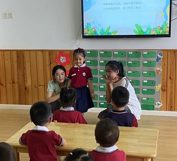推普志愿者们精心设计了古诗诵读、了解民族文化等一系列普通话主题的互动游戏,并通过生动幽默的语言,让小朋友们了解普通话在生活中的作用。志愿者们还和幼儿园教师一起合作配合,通过互动游戏,让孩子们在游戏过程中自然而然接触和使用普通话,感受普通话的魅力,激发他们对学习普通话的兴趣。
