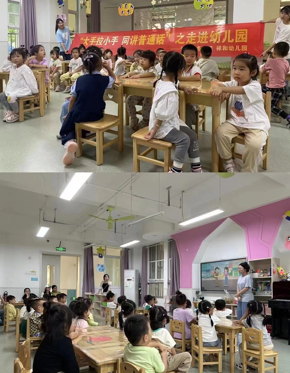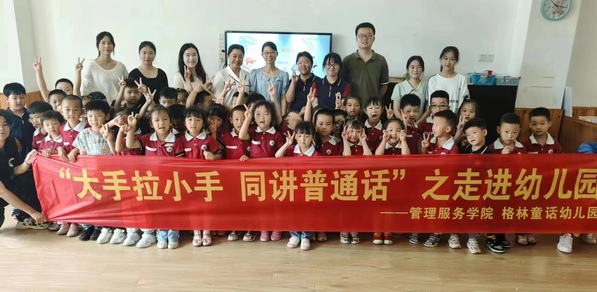 推广普通话,从娃娃抓起。9月14日上午,院团总支组织开展了“大手拉小手 同讲普通话”-走进幼儿园活动。学院共组建了两支推普小分队,走进了格林童话幼儿园和祥和幼儿园。
