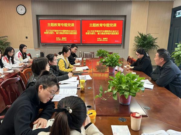 授课最后要求要把学习贯彻习近平新时代中国特色社会主义思想与大力发展职业教育工作实际结合起来,要持续深化推进学院内涵发展,既要坚持和加强党的全面领导,又要坚决落实立德树人根本任务,积极推进产教融合、深化院企合作、加快本科专业建设、加大走出去脚步,切实持续深化学院内涵发展,切实做到以学铸魂、以学增智、以学正风、以学促干,坚持“为党育人、为国育才”,培养更多适应经济社会高质量发展需要的高素质技术技能人才。(文/图:吴雨燕 审稿:陈颖)