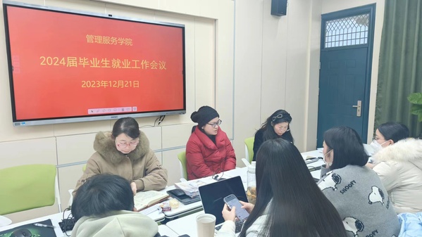 为了更好的推进2024届毕业生就业工作,12月21日,管理服务学院在文旅大师工作室召开了2024届毕业生就业工作部署会。院党总支书记、院长陈颖、院毕业生就业工作小组全体成员参加会议,会议由院学生工作负责同志主持。