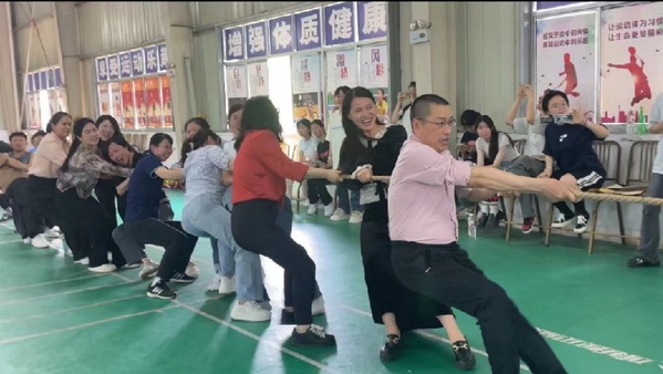最后,拔河比赛点燃了全场的高潮。全体师生分成不同的队伍,大家的努力和团结让每一轮拔河比赛都充满了激烈和紧张感,他们统一步调、拼尽全力,凝聚并展现了令人钦佩的力量和团队精神。