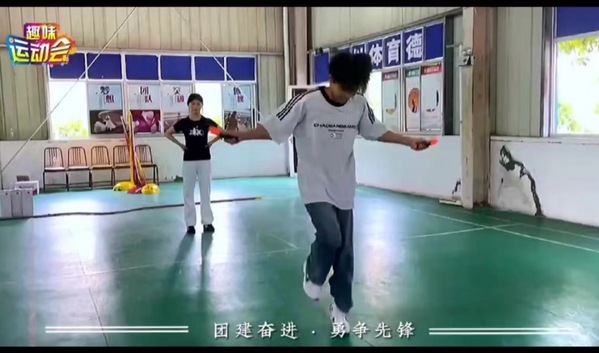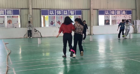 “两人三足”项目中,每队派出十名选手两两配合,进行接力赛。学生团队的胜出方与教师团队PK。这场比赛不仅是对速度的考验,更是对队员间默契与协调能力的挑战。现场欢声笑语间,紧张刺激的氛围逐渐升温,各支队伍在赛道上展现出了截然不同的风采。有的队伍稳健前行,以扎实的步伐稳定推进;有的队伍则选择快速小跑,配合默契,步调一致;还有的队伍别出心裁,以单脚跳跃的方式向前冲。场外观众也不时发出阵阵欢呼声,为参赛队伍加油打气。