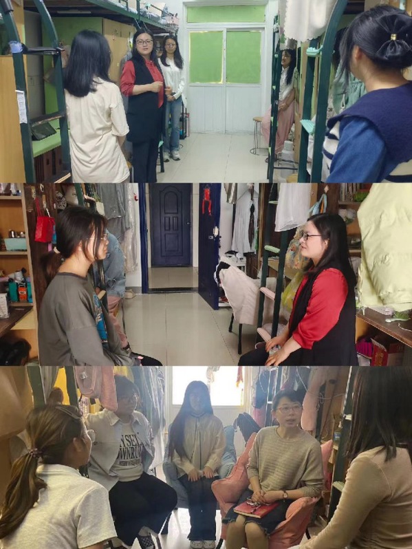 4月29日,管理服务学院党总支组织教师党员集中走访联系的学生宿舍,并对所联系的宿舍同学从思想动态、专业学习、生活习惯、宿舍文化、校园文化、心理健康、生涯规划、就业意向、家庭情况等方面进行全方位、多角度地深入了解和教育引导。同时,老师们鼓励学生党员、入党(团)积极分子、学生干部等主动发挥模范带头作用,从自我做起、从身边做起、从小事做起,积极创建“优秀文明寝室”“党员示范寝室”,带领同学们共同营造温馨舒适的宿舍环境。