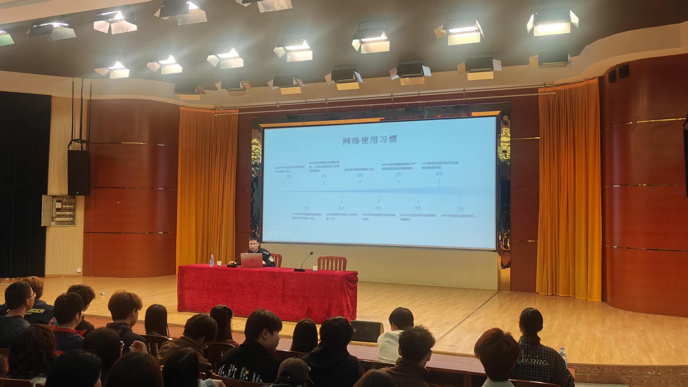 吴警官首先用一组触目惊心的调研数据,直观展示了当代大学生在网络行为中存在的安全隐患。通过剖析“高薪刷单陷阱”、“贫困助学金诈骗”等真实案例,他深入浅出地揭示了诈骗分子如何精准利用学生的心理弱点设下圈套。现场演示环节更是让师生们大开眼界——原来“随手拍照发原图”这样的小习惯,竟可能成为个人信息泄露的漏洞;而AI技术的滥用,更让“眼见为实”的传统认知面临挑战。讲座中,吴警官特别强调了网络行为的法律边界,结合《刑法》《民法典》相关条款,详细解读了传播网络谣言、实施网络暴力等行为的法律后果。最后,他从技术防护、心理防御、法律意识三个维度,为同学们量身定制了一套“网络安全防护秘籍”,帮助大家锻造坚不可摧的“认知铠甲”。