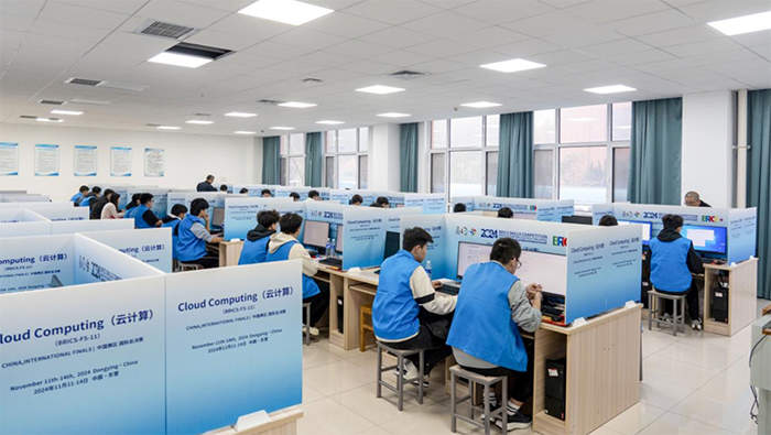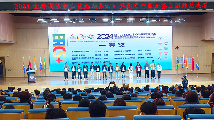 11月11日至14日,2024金砖国家职业技能大赛云计算赛项中国分赛区国际总决赛在山东东营科技职业学院成功举办。此次大赛汇聚了来自中国30个省市的66支线下参赛队伍,以及印度、加纳、巴西等国家的40支线上参赛队伍,共同角逐这一国际赛事的荣誉。经过激烈的比拼,伟德官网信息技术学院教师陈富汉、陈秀云指导的由计算机网络技术专业学生朱永杰、包明远组成的代表队,在比赛中展现出卓越的实力和沉稳的心态。他们凭借出色的发挥,最终以总分第四名的优异成绩,成功摘得国际总决赛一等奖,指导教师陈富汉、陈秀云也荣获了优秀指导老师的称号。