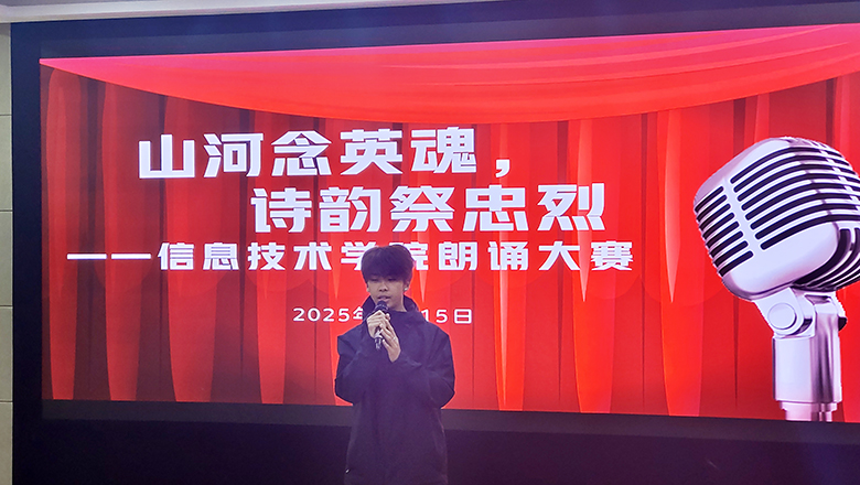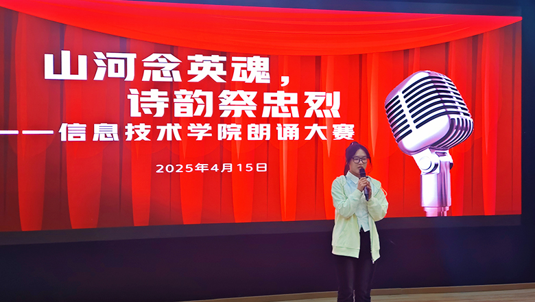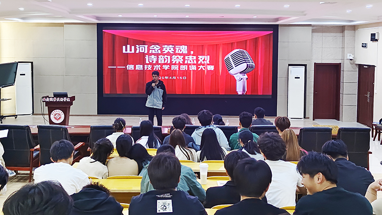 4月15日,信息技术学院在2号教学楼216信仰报告厅举办了一场主题为 “山河念英魂,诗韵祭忠烈”的朗诵比赛,缅怀英烈,传承红色基因,弘扬爱国主义精神。此次活动吸引了众多师生的关注与参与,在追思中景仰革命先辈的崇高,在诵读中感受新时代的幸福美好。