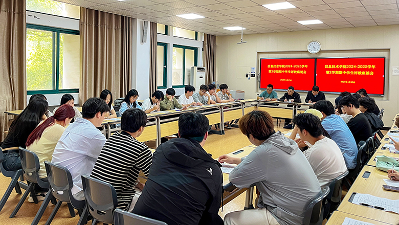 为进一步加强教学管理,提高教学质量,4月25日下午,信息技术学院于2号教学楼203教室召开2024至2025学年第2学期期中学生评教座谈会。学校教学督导吴跃虎教授受邀到会指导,信息技术学院副院长熊祖涛主持会议,各专业建设负责人、教学管理人员以及各班级学生代表齐聚一堂,共同为学院教学质量提升建言献策。