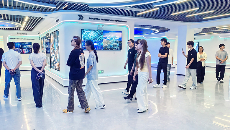 在高密度算力集群区域,调研组参观了算力资源池。该集群不仅绿色节能,还具备千柜级扩容能力,为未来数字经济发展提供了有力支撑。在智慧中枢控制展厅,师生体验了智能神经中枢系统、AI预测性运维平台以及三位一体安防体系,切实感受到数字科技在城市管理与安全保障中的深度应用。