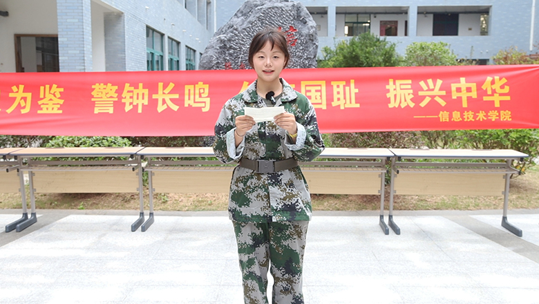 随后进行的是主题演讲环节。2025级4名新生代表围绕“勿忘国耻・吾辈当自强”展开演讲。同学们结合自身感悟与成长经历,讲述先辈抗战的英雄壮举,抒发对祖国的深厚感情,一致表示要继承先烈遗志,刻苦学习、奋发图强,为国家的繁荣发展贡献青春力量。“历史不能遗忘,自强才能强国”——一名学生的发言道出了大家共同的心声,进一步激发了现场同学的爱国热情与责任担当。