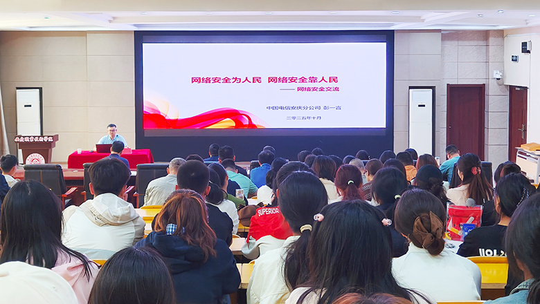 为增强师生网络安全意识,提升网络安全防护能力,10月15日下午,信息技术学院在2号教学楼216信仰报告厅举办“网络安全为人民 网络安全靠人民”专题讲座。全国劳动模范、中国电信安庆分公司战新产品营销中心副总经理、高级工程师彭一言应邀担任主讲。该院院长疏国会出席讲座并讲话,全体教职工及各班级学生代表共计150余人到场聆听。