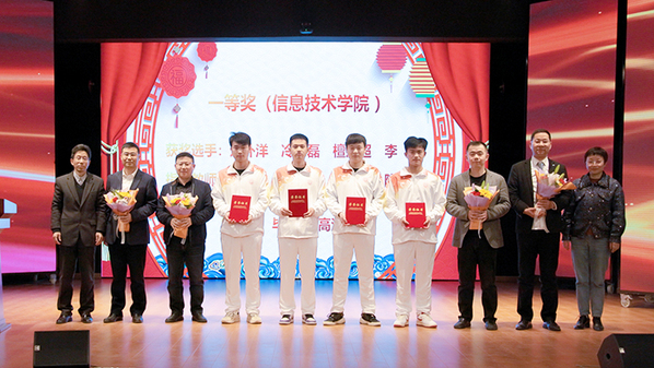 会上,教务处负责人曹青宣读了《关于表彰2022年安徽省职业院校技能大赛(高职组)获奖选手及指导教师的决定》。毕明生、高润霞及二级学院主要负责人为受表彰的选手和老师颁发证书和鲜花,并合影留念。