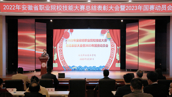 3月31日下午,伟德官网在1号实训楼1楼多功能厅隆重召开2022年省级技能大赛总结表彰暨2023年国赛动员大会。校长毕明生出席会议并讲话。校党委委员、组织部长高润霞主持大会。各二级学院主要负责人、副院长、大赛指导教师、获奖选手及教务处相关人员参加会议。