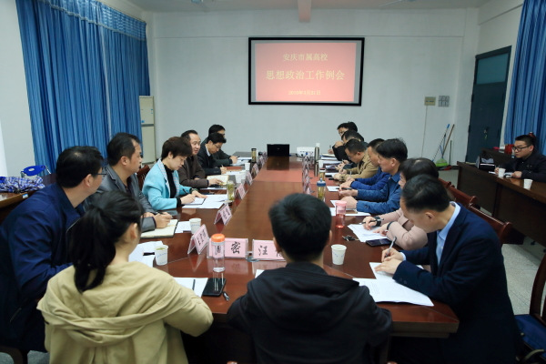 为切实加强市属高校的思想政治工作,3月21日上午,中共安庆市委高教工委在我院组织召开市属高校思想政治工作第一季度例会。市委高教工委书记、市教体工委书记、市教体局局长徐晓春出席会议并讲话,市委高教工委副书记陈亚玲主持会议,各市属高校分管领导、组织部长、宣传部长及思政课教师代表参加会议。我院党委副书记、院长毕明生出席会议并作经验介绍。
