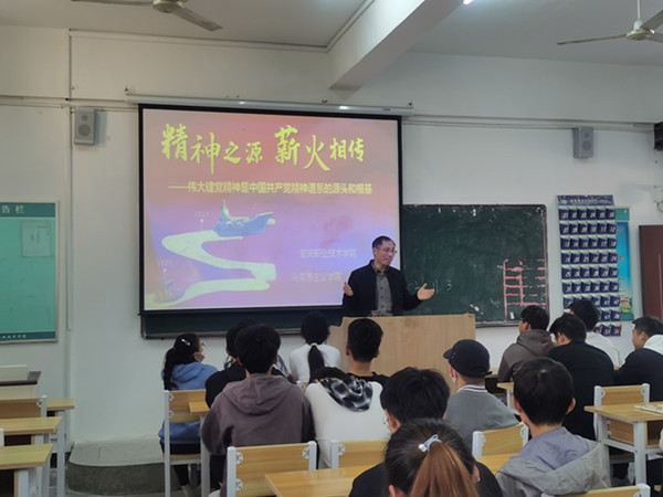 为帮助“践行社”成员更好地理解中国共产党的伟大建党精神,11月3日下午,马克思主义学院党总支书记、院长朱松节教授应邀为伟德官网思政社团“践行社”成员做了“伟大建党精神是中国共产党精神谱系的源头和根基”专题讲座。践行社成员50多人现场聆听讲座。