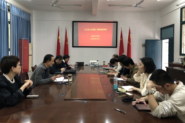 为落实教育部办公厅《高校“形势与政策”课教学要点(2023 年上辑)》文件精神,做好相关教学工作,马克思主义学院于4月13日下午在3号教学楼106会议室举办《形势与政策》课程集体备课会,院长余锋、全体任课教师参加会议,副院长余世建主持会议。