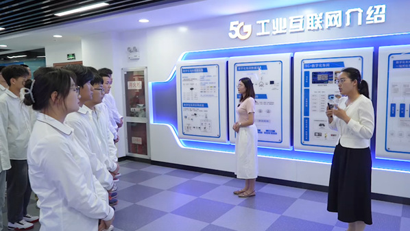 在城市大脑指挥中心和工业大脑智慧展厅,讲解员邵雯萱和陆亚玲分别向学生们介绍了我市智慧城市建设,工业大脑的底层架构等项目的工作机制和建设情况,并结合物联网专业的相关知识介绍了物联网技术在这些项目中的应用。她们表示,我国自2015 年开展“中国制造2025”战略以来, “互联网+”技术应用高速发展,城市数字化、管理服务的智能化、工业生产智能化已成为发展趋势。我市已有上百家企业的生产、管理和多个城市建设项目与信息化深度融合,并取得初步成效,对物联网技术、5G技术、大数据技术等新兴技术软硬件需求正处于高速上升期,特别是相关技术的人才紧缺,导致安装维护成本极高。为此,市政府和市电信公司已成立部门,加紧开展相关技术人才的培养工作。希望同学们在校期间能够珍惜大学时光,努力学习,练就过硬本领,毕业后留宜发展,加入安庆电信的大家庭。
