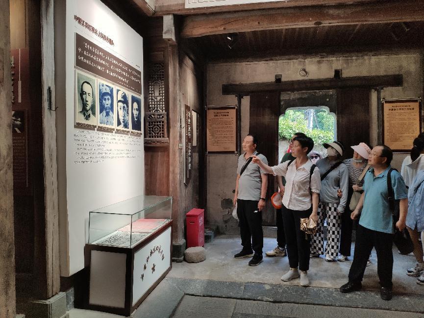 随后,全体党员参观了位于严家古村的红色文化展示馆,一楼展区为“红色”主题展,展馆内以大量的图片资料记录着1934年方志敏领导的红军北上抗日先遣队有力策应了中央红军长征,在牯牛降一带打土豪、分田地,沿途刷写的革命标语至今犹存,留下了可歌可泣的光辉足迹。二楼展区为“绿色”主题展,主要展示石台县生态文化、戏曲文化、革命文化以及获得荣誉等。