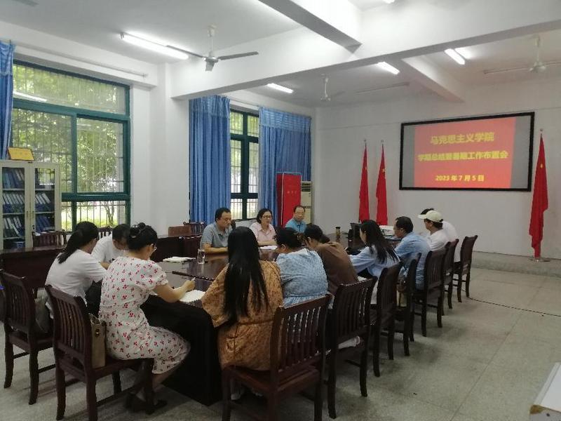 7月5日上午,马克思主义学院在3号教学楼106会议室召开了本学期工作总结会议暨暑期工作布置会,全体思政课教师参加。
