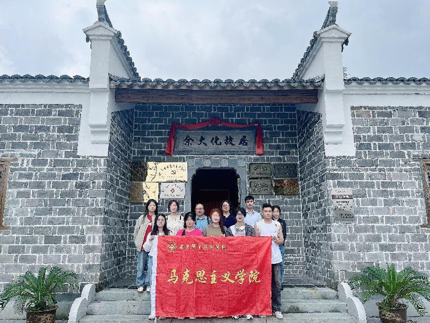 为深入学习贯彻习近平总书记关于青年工作的重要思想,引导和帮助青年学生上好与社会实践相结合的“大思政课”,8月29日,马克思主义学院组织师生11人赴潜山官庄村开展“奋进新征程、乡村共筑梦”大学生“三下乡”社会实践活动。通过实地参观余大化故居和官庄孝义博物馆进行实践学习,院党总支书记余锋率队参加了此次实践活动。