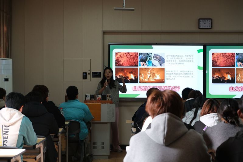 课后,毕明生与教师和同学们进行了亲切的交流,对教师的授课和同学们的听课情况予以肯定并进行点评。他说,李老师通过视频和大量相关案例分析,授课条理清晰,内容丰富,师生互动积极,充分发挥了学生学习的主体性。