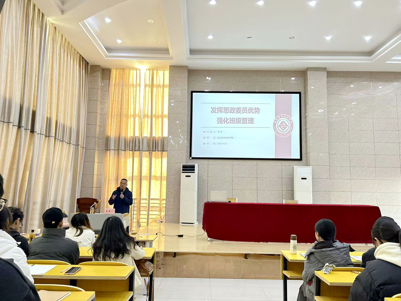 李五一围绕“设立思政委员的重要意义”,“思政委员的职责和权利”“思政委员在班级的作用与优势”等话题向同学们作了具体说明,他鼓励同学们在今后的学习工作中要涵养精神品格、涵养理论素养、涵养实践技能,努力成长为思政教师教学的小助手,辅导员日常工作的小帮手,班级日常思政工作的小能手。