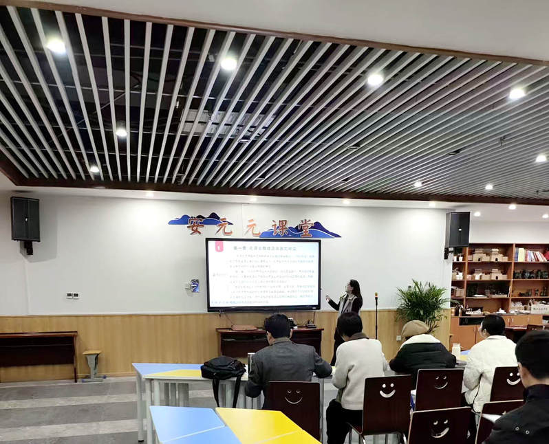 参观结束后,教研室紧密结合专题展活动,组织师生在安庆市博物馆社教活动中心开展课程第一章《毛泽东思想及其历史地位》教研活动。期间,教师们就本章中教学重点难点的突破、案例教学的融入、课堂互动的形式进行了研讨和交流。在倾听学生建议和心声环节,学生表示期待教师们运用学生感兴趣、能接受的话语体系和灵活的教学形式把书本上抽象的知识具象化,真正实现入脑入心。