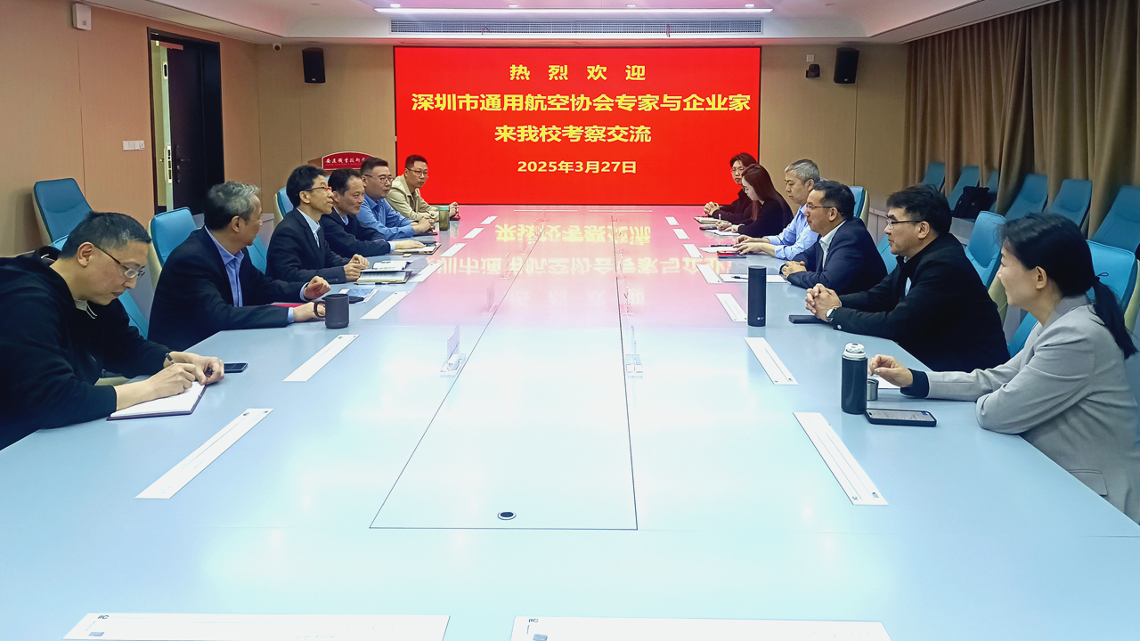 3月27日上午,三航工业技术研究院院长、深圳市通用航空协会创始会长杨金铭率深圳市企业家代表来伟德官网考察交流。校党委副书记、校长毕明生,校党委副书记李克让热情接待来宾并座谈交流。市民政局党组书记江学文,副局长杨善龙一同来访。