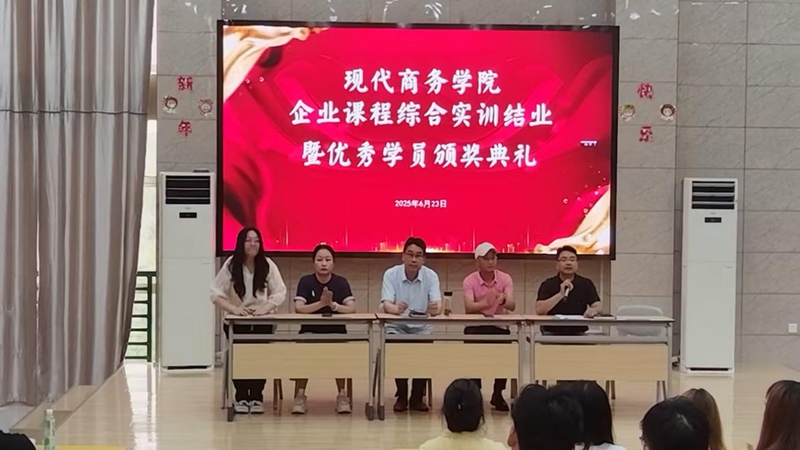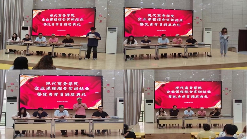 6月23日下午,现代商务学院举行上半年企业综合实训课程结业暨优秀学员颁奖典礼。现代商务学院院长金启胜,安徽云霁电商公司负责人、安徽省产业教授汪义德,学院教学工作负责人、学生工作负责人、教师代表以及参加本次实训课程的全体学生共同出席。该院学生工作负责人主持。