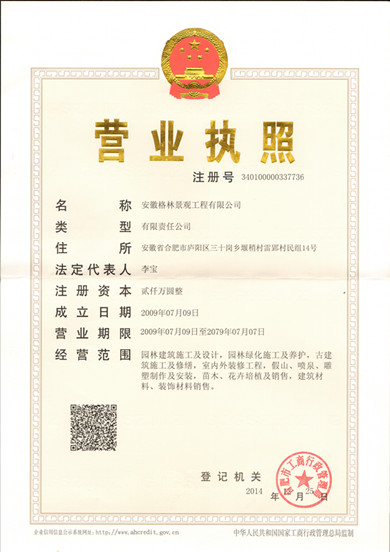 安徽格林景观工程有限公司成立于2009年7月9日,是安徽新华阳光控股集团有限公司全资子公司,注册资本为2000万圆整,目前公司是城市园林绿化施工二级企业申报中。