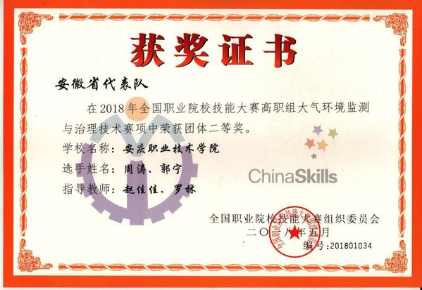 5月9日至5月12日,全国职业院校(高职组)技能大赛《大气环境监测与治理技术》项目在天津现代职业技术学院举行。园林园艺系环境工程技术专业郭宁、周涛两位同学沉着冷静,全身心投入到竞赛当中,经过4小时的努力合作,最终荣获该项目二等奖。